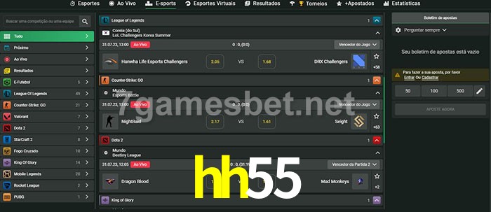 O hh55 oferece uma grande seleção de opções de apostas em e-sports com probabilidades competitivas